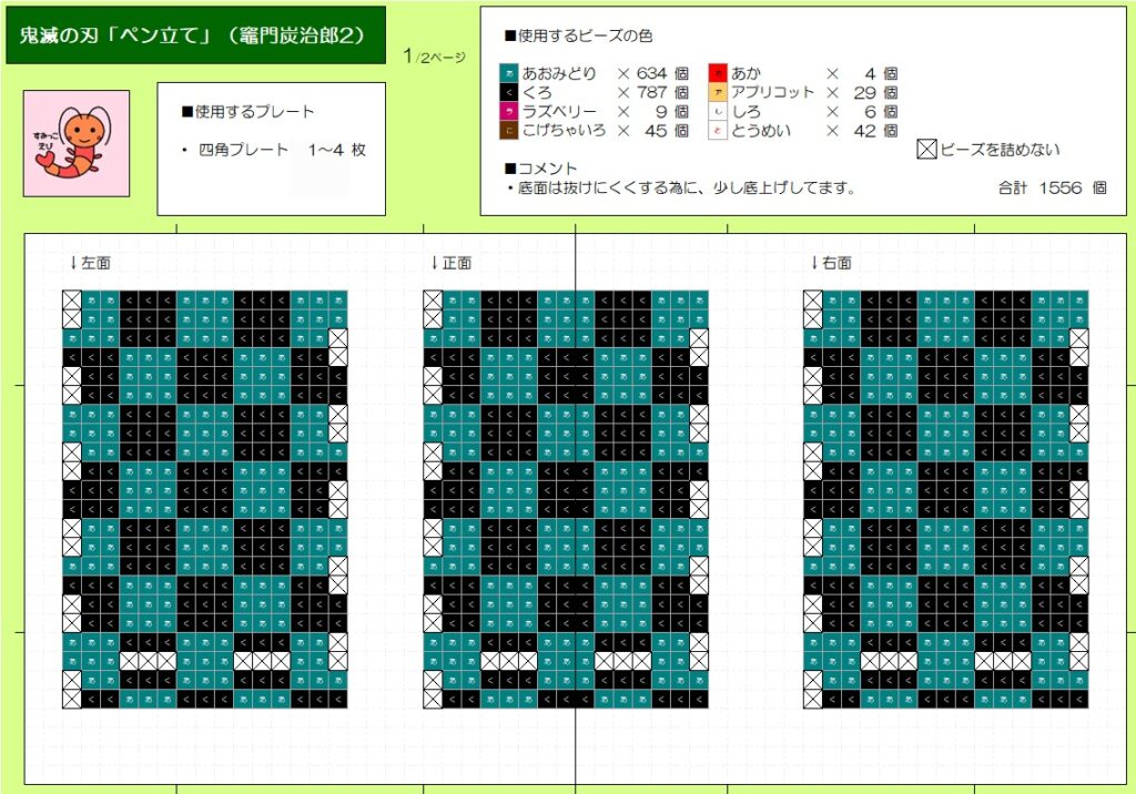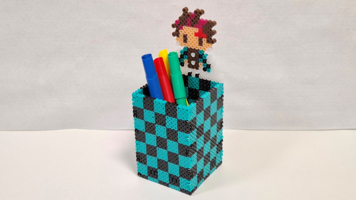 パーラービーズで鬼滅の刃「ペン立て」(竈門炭治郎2)を作りました。