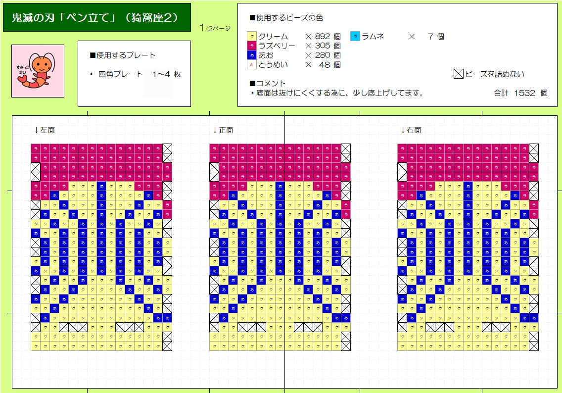鬼滅の刃「ペン立て」(猗窩座2)作り方 すみっこえび 2か月前 パーラービーズで鬼滅の刃「ペン立て」(猗窩座2)を作りました。図案と組立動画を掲載してるので、良かったら参考に作って下さい。 図案はこちら(全2ページ) 組立動画はこちら