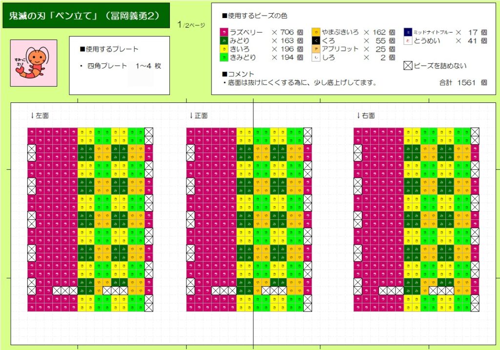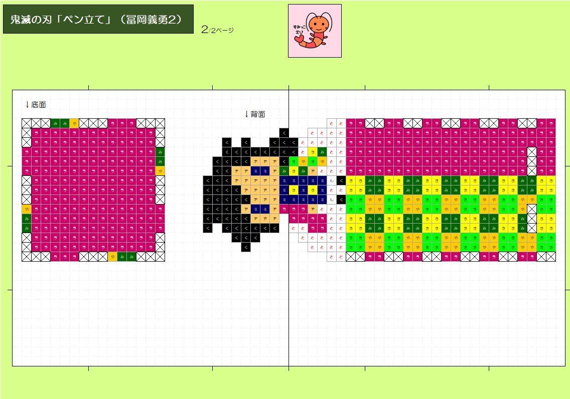 鬼滅の刃「ペン立て」(冨岡義勇2)作り方 すみっこえび 4日前 パーラービーズで鬼滅の刃「ペン立て」(冨岡義勇2)を作りました。図案と組立動画を掲載してるので、良かったら参考に作って下さい。 図案はこちら(全2ページ) 組立動画はこちら