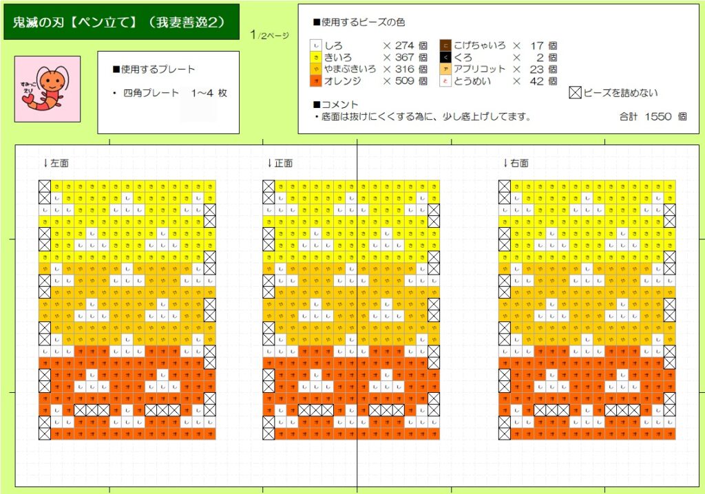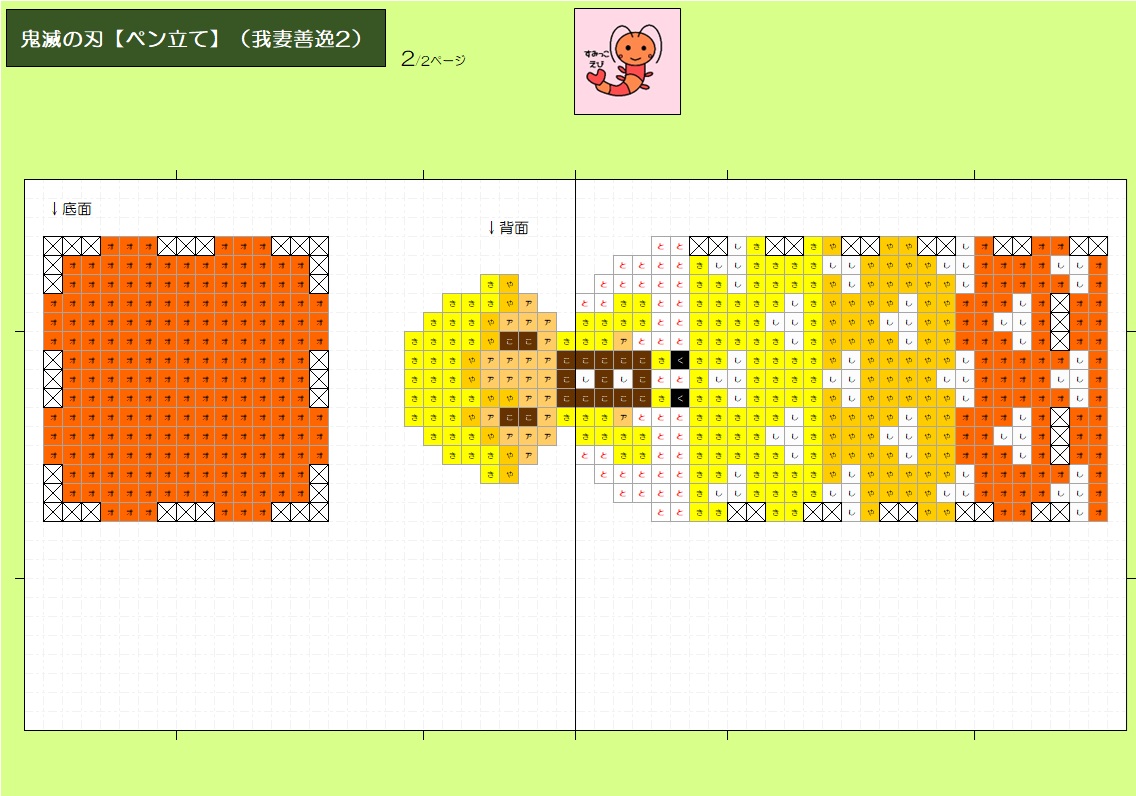 鬼滅の刃「ペン立て」(我妻善逸2)作り方 鬼滅作品投稿 X LINE コピー 2025.11.23 パーラービーズで鬼滅の刃「ペン立て」(我妻善逸2)を作りました。図案と組立動画を掲載してるので、良かったら参考に作って下さい。 図案はこちら(全2ページ) 組立動画はこちら