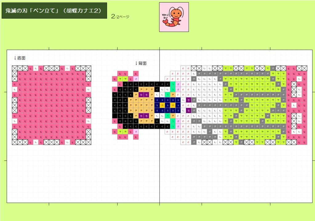 鬼滅の刃「ペン立て」(胡蝶カナエ2)作り方 鬼滅作品投稿 X LINE コピー 2025.11.28 パーラービーズで鬼滅の刃「ペン立て」(胡蝶カナエ2)を作りました。図案と組立動画を掲載してるので、良かったら参考に作って下さい。 図案はこちら(全2ページ) 組立動画はこちら