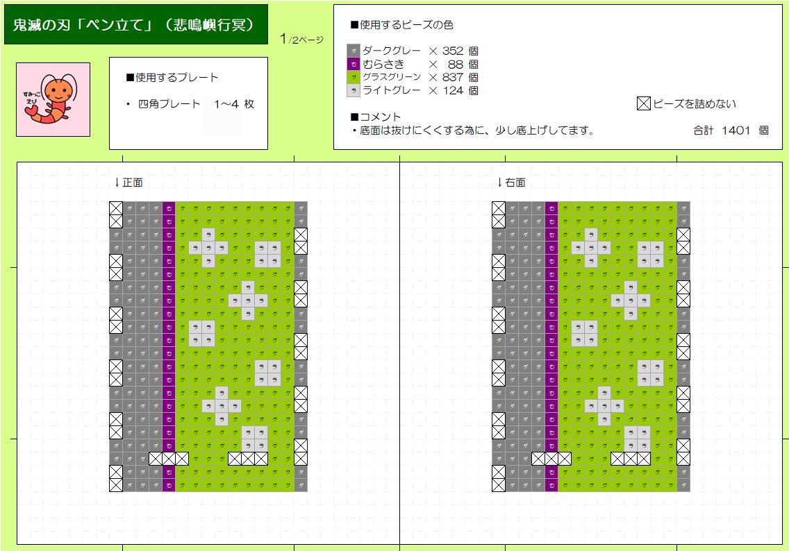 鬼滅の刃「ペン立て」(悲鳴嶼行冥)作り方 すみっこえび 2日前 パーラービーズで鬼滅の刃「ペン立て」(悲鳴嶼行冥)を作りました。図案と組立動画を掲載してるので、良かったら参考に作って下さい。 図案はこちら(全2ページ) 組立動画はこちら
