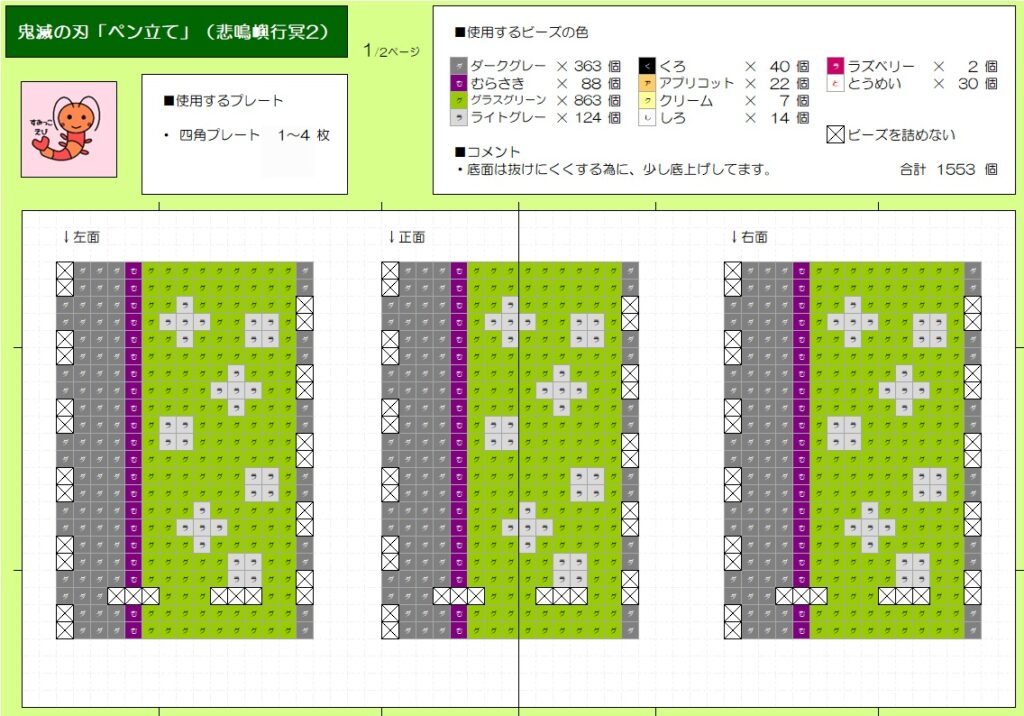 図案と組立動画を掲載してるので、良かったら参考に作って下さい。