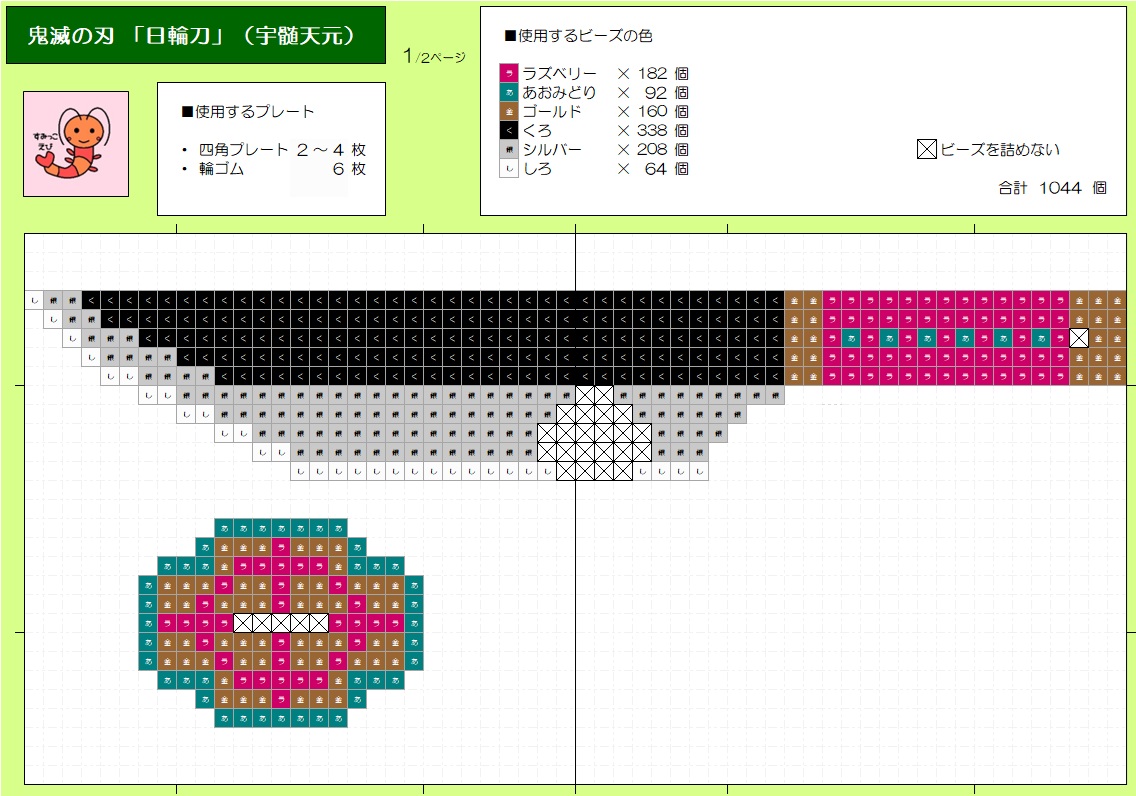 鬼滅の刃「日輪刀」(宇髄天元)作り方【立体アイロンビーズ】 すみっこえび 4年前 パーラービーズで宇髄天元の「日輪刀」を作りました。図案と組み立て動画を掲載してるので、良かったら参考に作って下さい。 四角プレートは2枚並べて使用します。チェーンの部分は遊びやすいようにカラー輪ゴムを使用します。 組立動画はこちら↑↑
