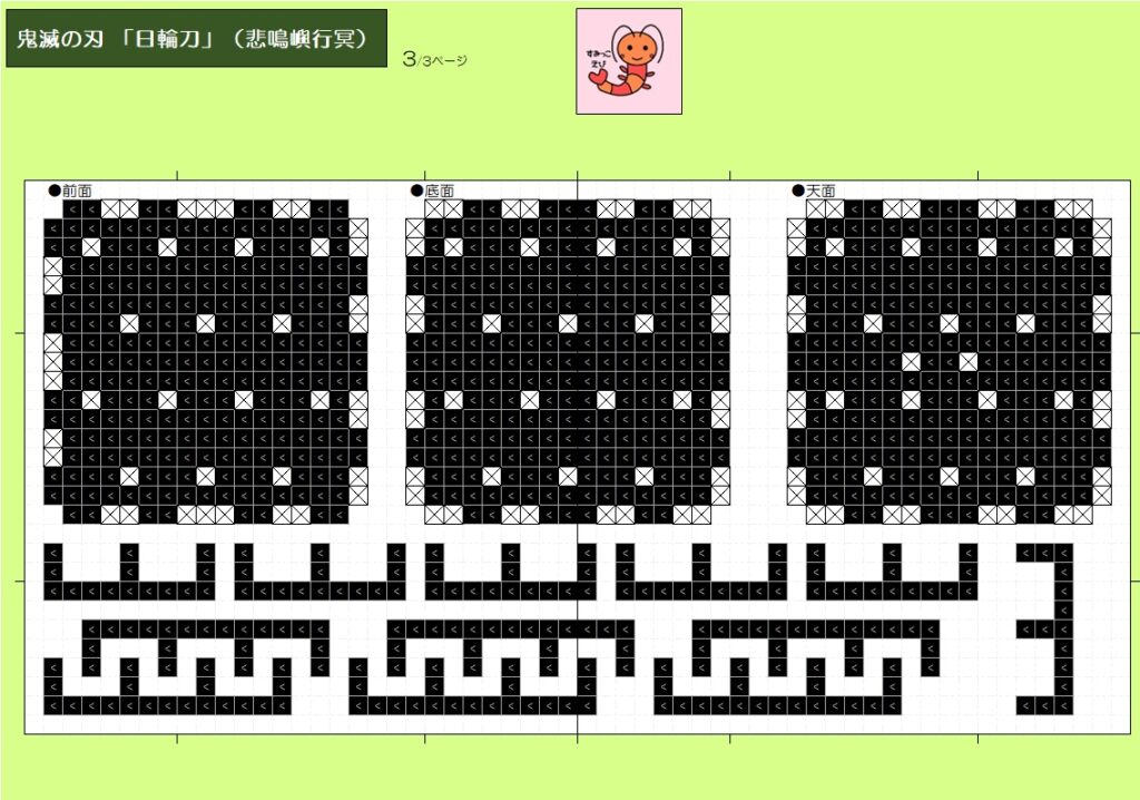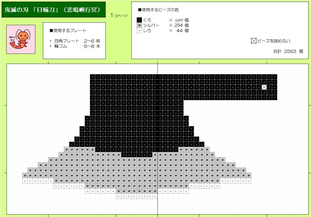 鬼滅の刃「日輪刀」(悲鳴嶼行冥)作り方【立体アイロンビーズ】 鬼滅作品投稿 X LINE コピー 2021.11.10 パーラービーズで悲鳴嶼行冥の「日輪刀」を作りました。図案と組み立て動画を掲載してるので、良かったら参考に作って下さい。 四角プレートは2枚並べて使用します。 チェーンの部分は遊びやすいように輪ゴムを使用します。 組立動画はこちら↑↑