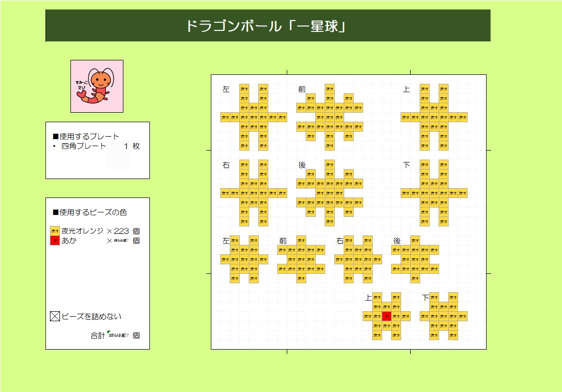 ドラゴンボール「一星球」作り方 すみっこえび 4時間前 パーラービーズでドラゴンボール「一星球」を作りました。図案と組立動画を掲載してるので、良かったら参考に作って下さい。 図案はこちら 組立動画はこちら